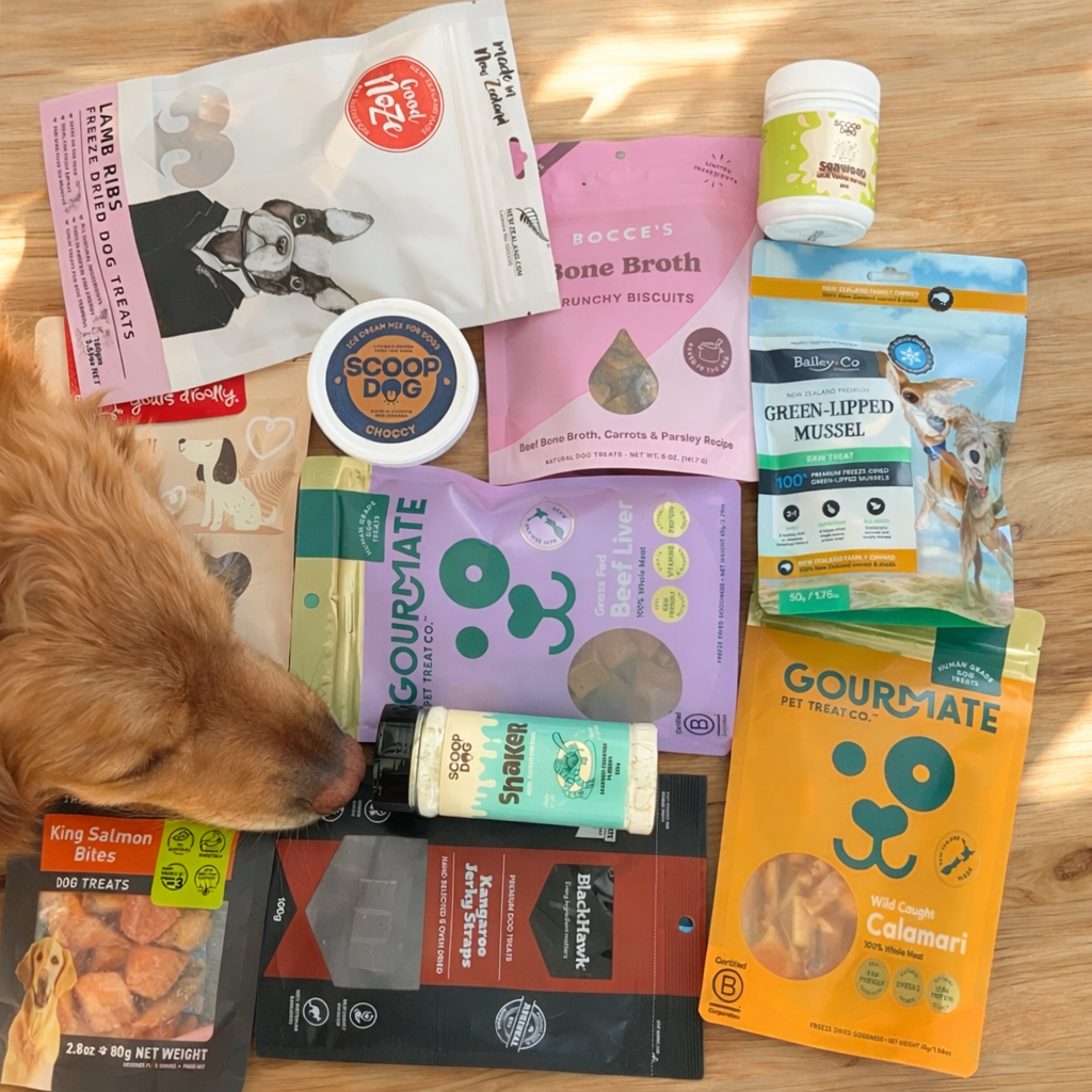 Premium dog gift boxes made in New Zealand.
