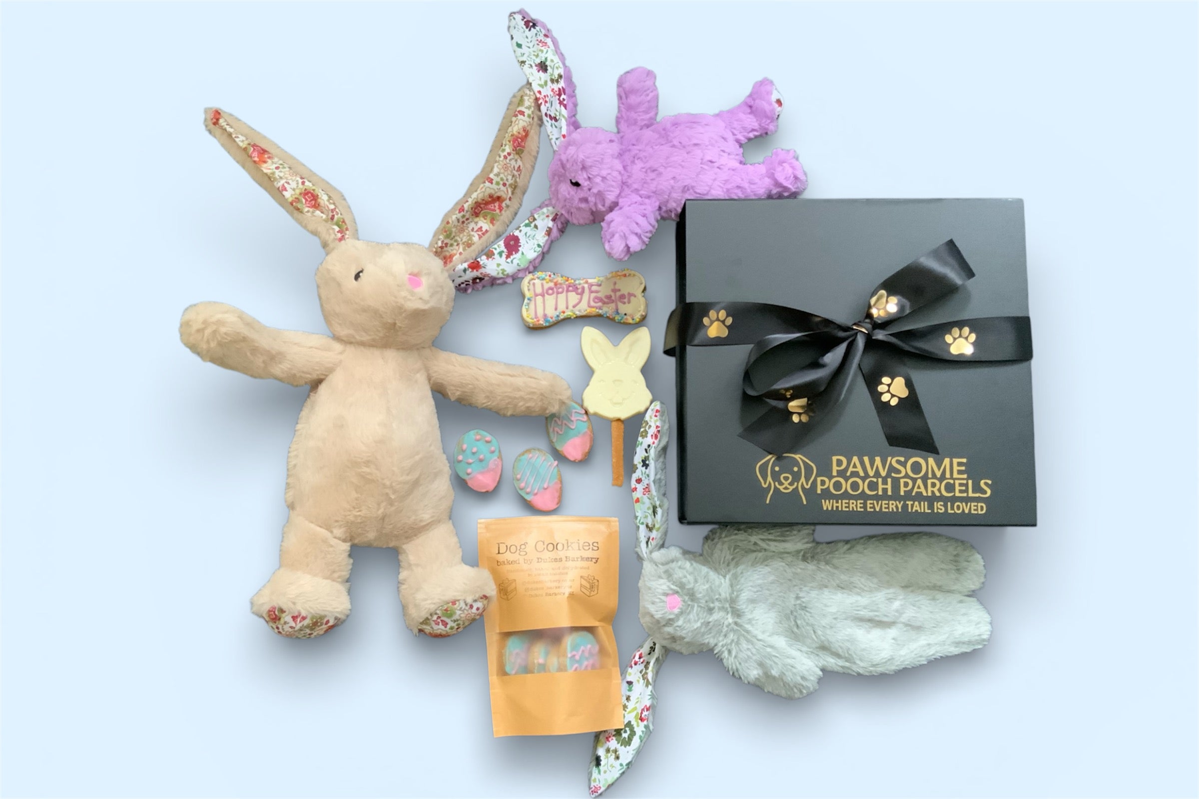 SHOP BOXES NOWEach Pawsome Pooch Parcel is beautifully presented in our black gift box, wrapped with a satin paw-print ribbon and thoughtfully styled to perfection.