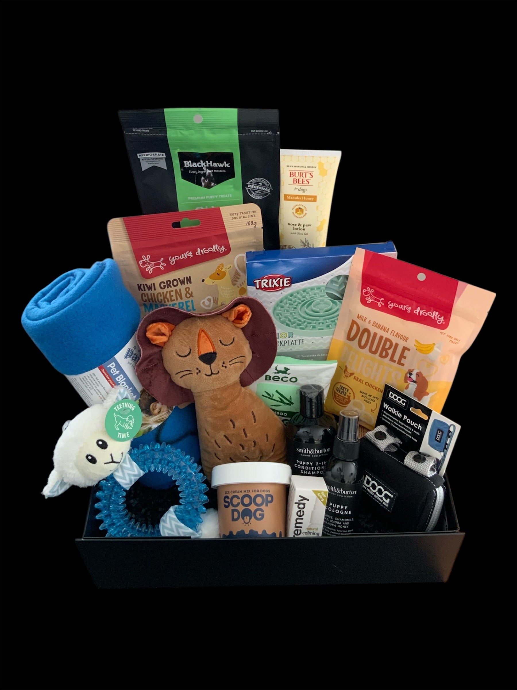Bursting with extra natural treats, fun toys, and goodies, this deluxe box is designed to keep him happy, healthy, and entertained. From playtime to snack time, it's the perfect way to spoil your little buddy and make his first adventures unforgettable.