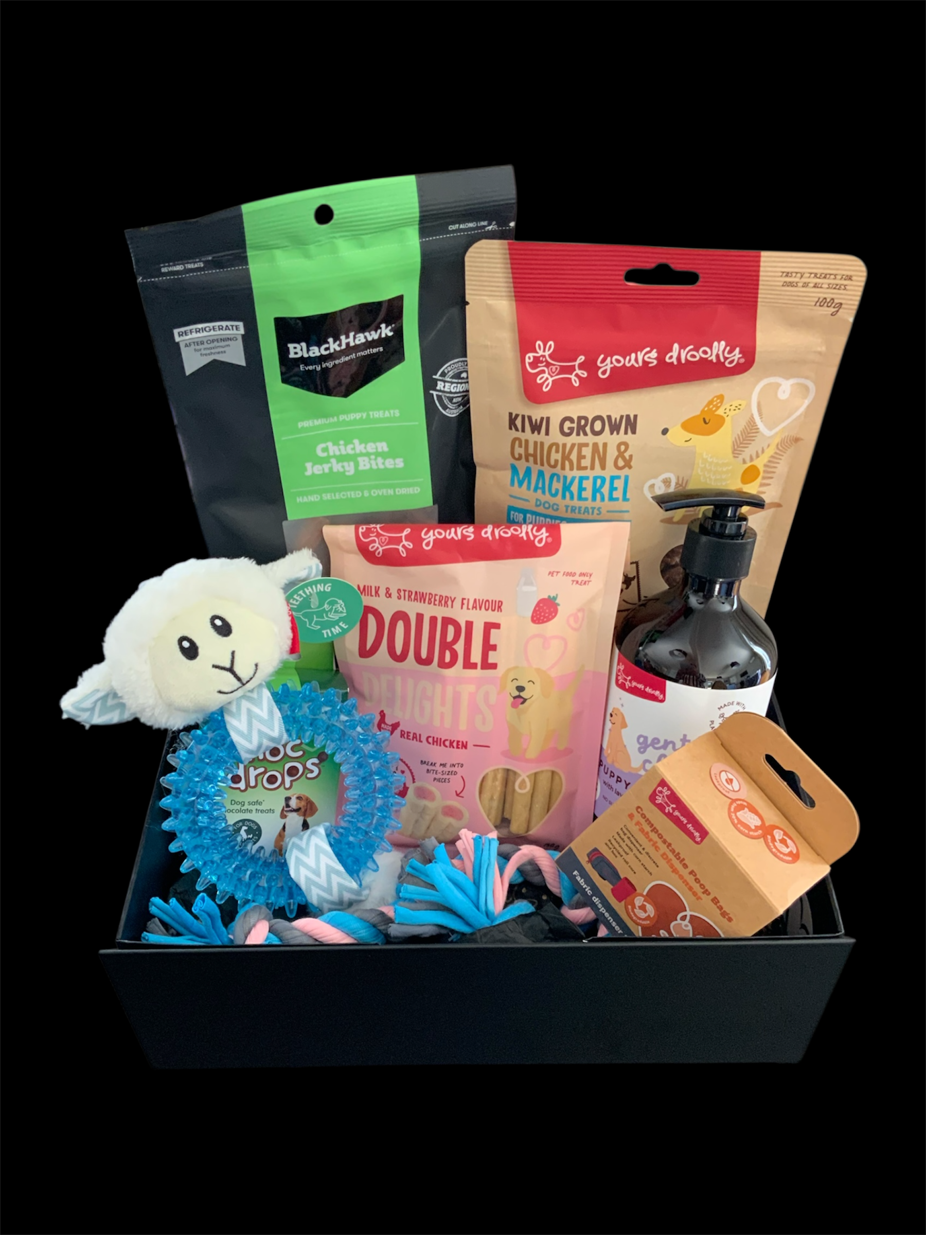 For the newest (and cutest) member of the family. Carefully curated for playful little paws, this box is filled with tasty treats, safe chew toys, and comforting goodies to make her tail wag from sunrise to nap time.